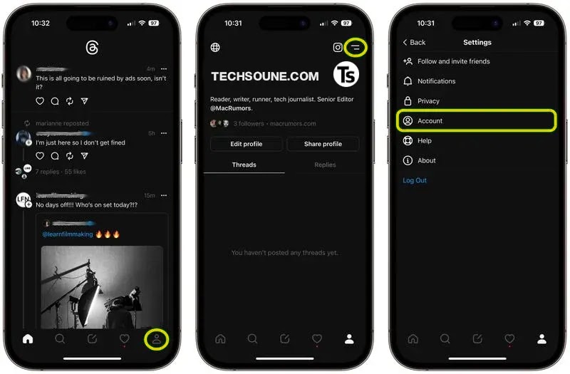 Threads، اضغط على أيقونة الملف الشخصي في الزاوية